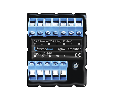 Wzmacniacz oświetlenia LED ampBox umożliwia podłączenie do sterownika większej ilości oświetlenia. Współpracuje z taśmami LED 12-24 VDC.