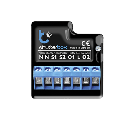 Sterownik shutterBox służy do sterownia roletami zewnętrznymi, żaluzjami, oknem czy markizą 230VAC.