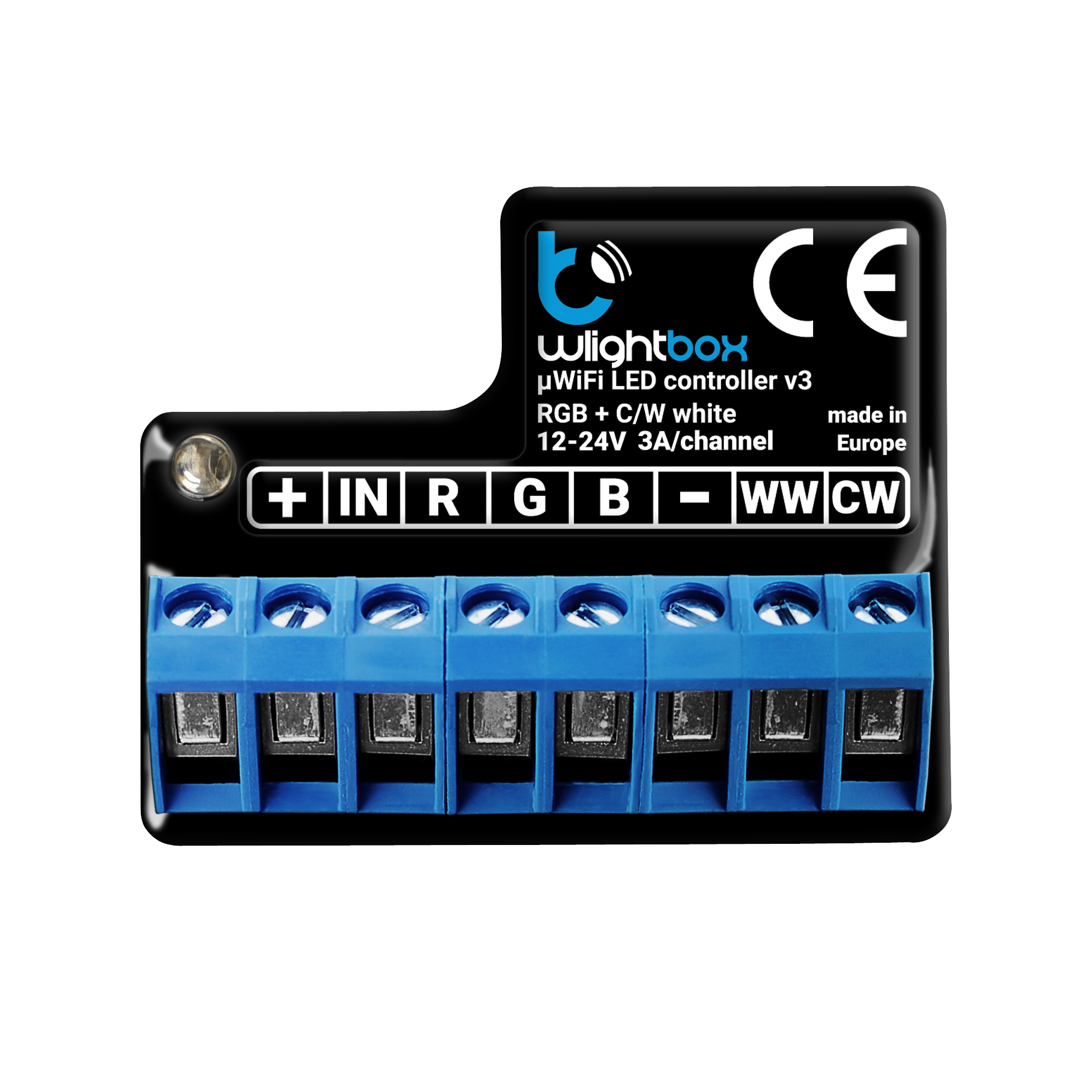 Sterownik wLightBox to urządzenie przeznaczone do sterowania 5 kanałami LED 12-24VDC. Możliwośc sterowania RGBW/RGBWW/CCT.